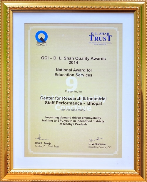 | 2014 | National award for Education Services in New Delhi, by QCI and DL Shah Trust | Download Here |