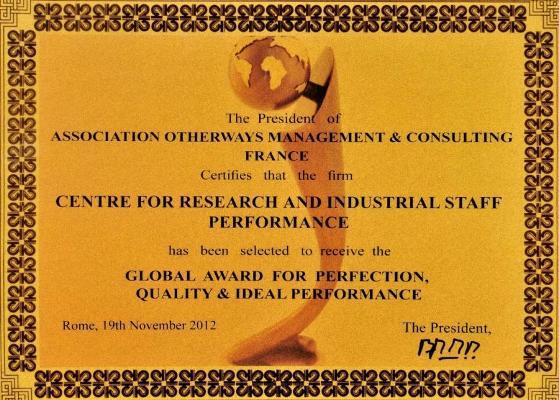 | 2012 | Global Award for Perfection, Quality & Ideal Performance | Download Here |
