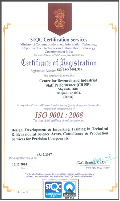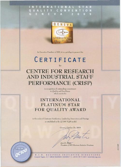 CRISP is a proud recipient of several awards and certificates of Global & National level recognition. The prestigious awards conferred on us are recognition of the symbol of excellence in the areas of our activities and a sign of a successful competitive organization.