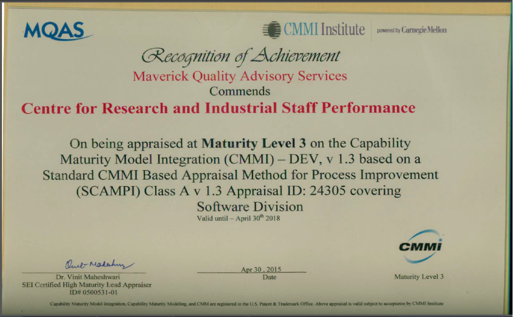 | 2018 | CRISP awarded CMMI Certification | Download Here |
